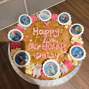 These delicious cookies are 9 inch round and come in chocolate chip, triple chocolate, white chocolate, or any other flavour you can think of!